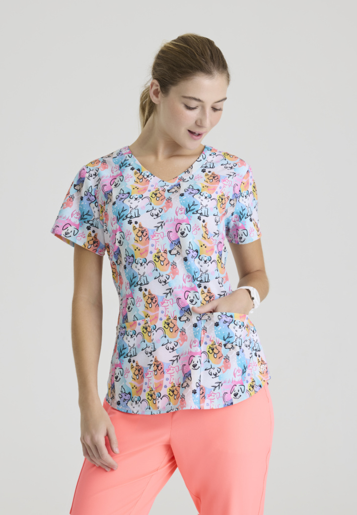 Важно, чтобы принт был мелким, повторяющимся и не перегружал визуально. Слишком яркие или крупные изображения могут отвлекать и не соответствовать профессиональной среде. Поэтому костюм для педиатра с принтом всегда остаётся сдержанным и нейтральным.