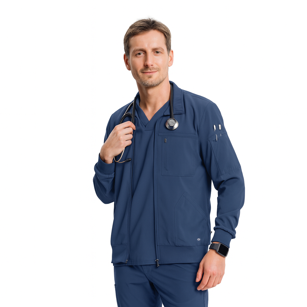 Стильная и удобная мужская медицинская куртка современного кроя из коллекции Infinity создана для профессионалов, ценящих комфорт и функциональность в течение всего рабочего дня.