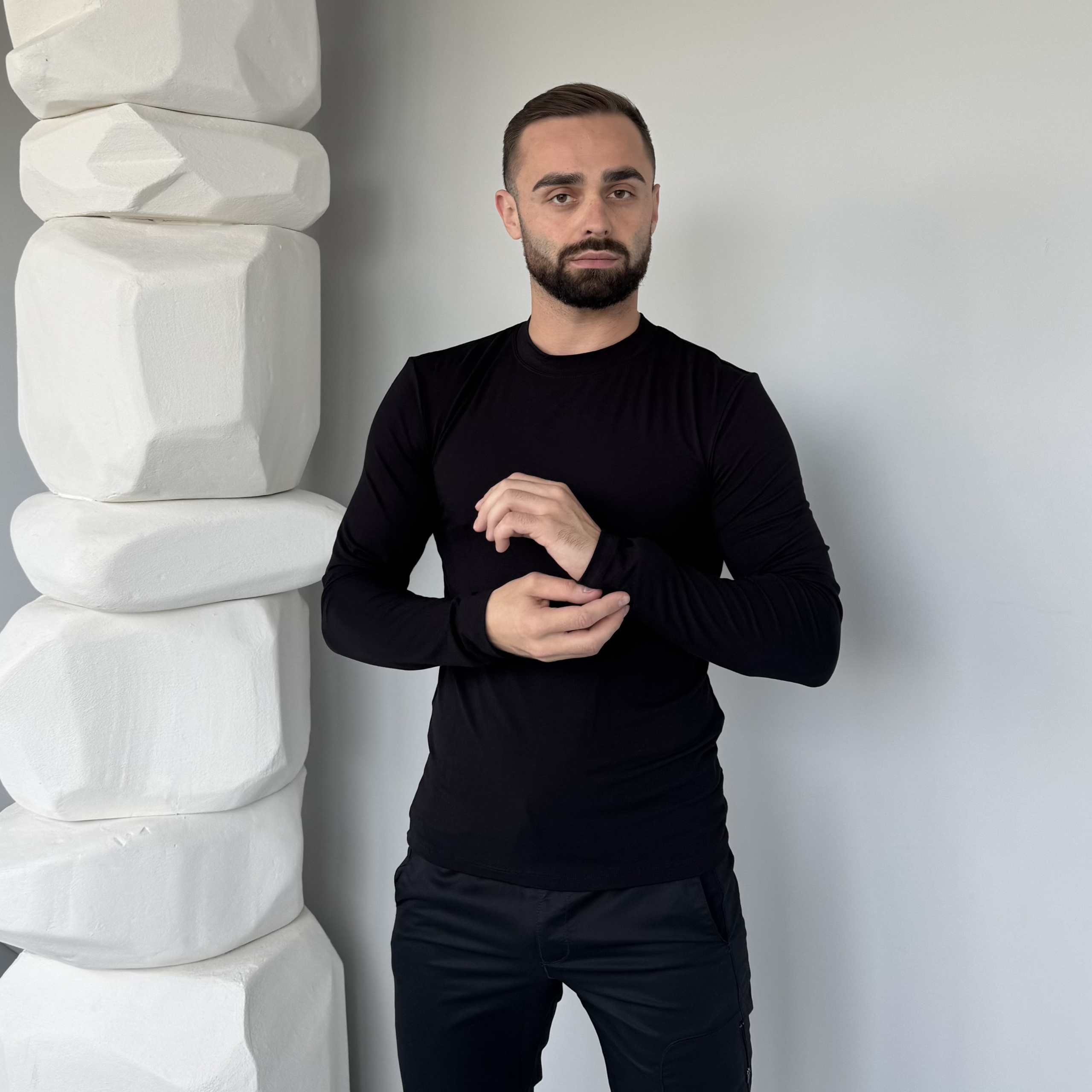 Мужская медицинская водолазка с длинным рукавом для ношения под форму или отдельно. Модель выполнена из мягкого трикотажа, обладает эластичностью и обеспечивает комфорт в течение рабочего дня. Современный крой подчёркивает силуэт, при этом не стесняет движений.