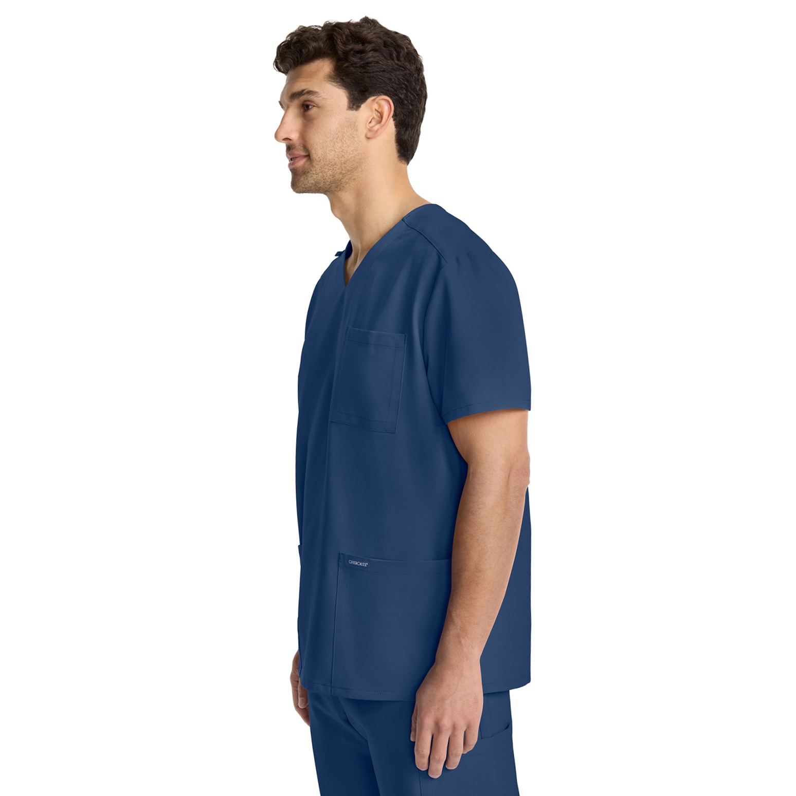 Мужской медицинский костюм Cherokee синий— надежное решение для врача, хирурга, стоматолога, фармацевта и другого медицинского специалиста, ценящего комфорт и аккуратный внешний вид.