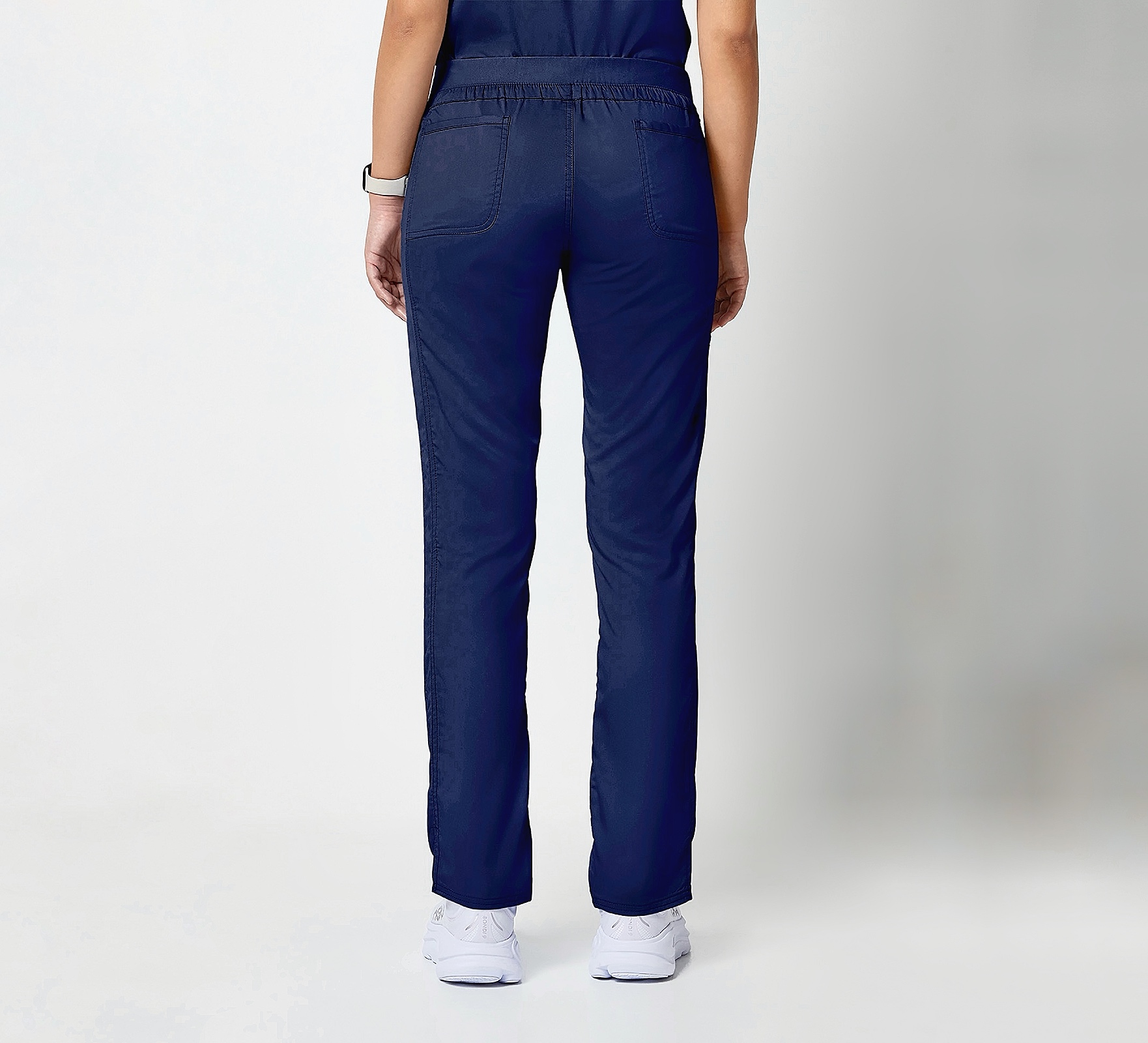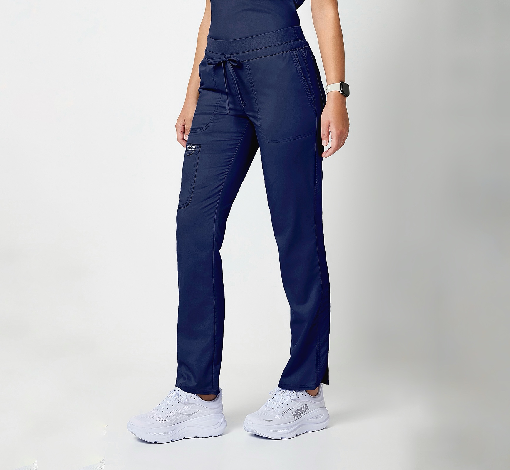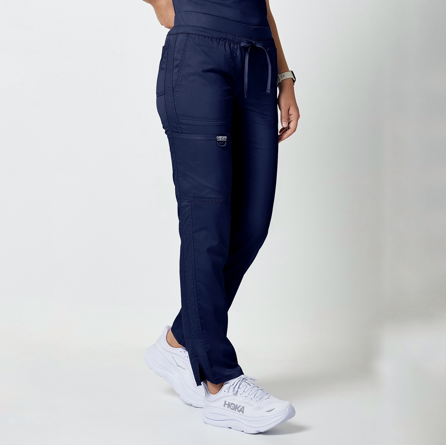 Женственные медицинские брюки со средней посадкой и зауженными штанинами подойдут на любой тип фигуры.