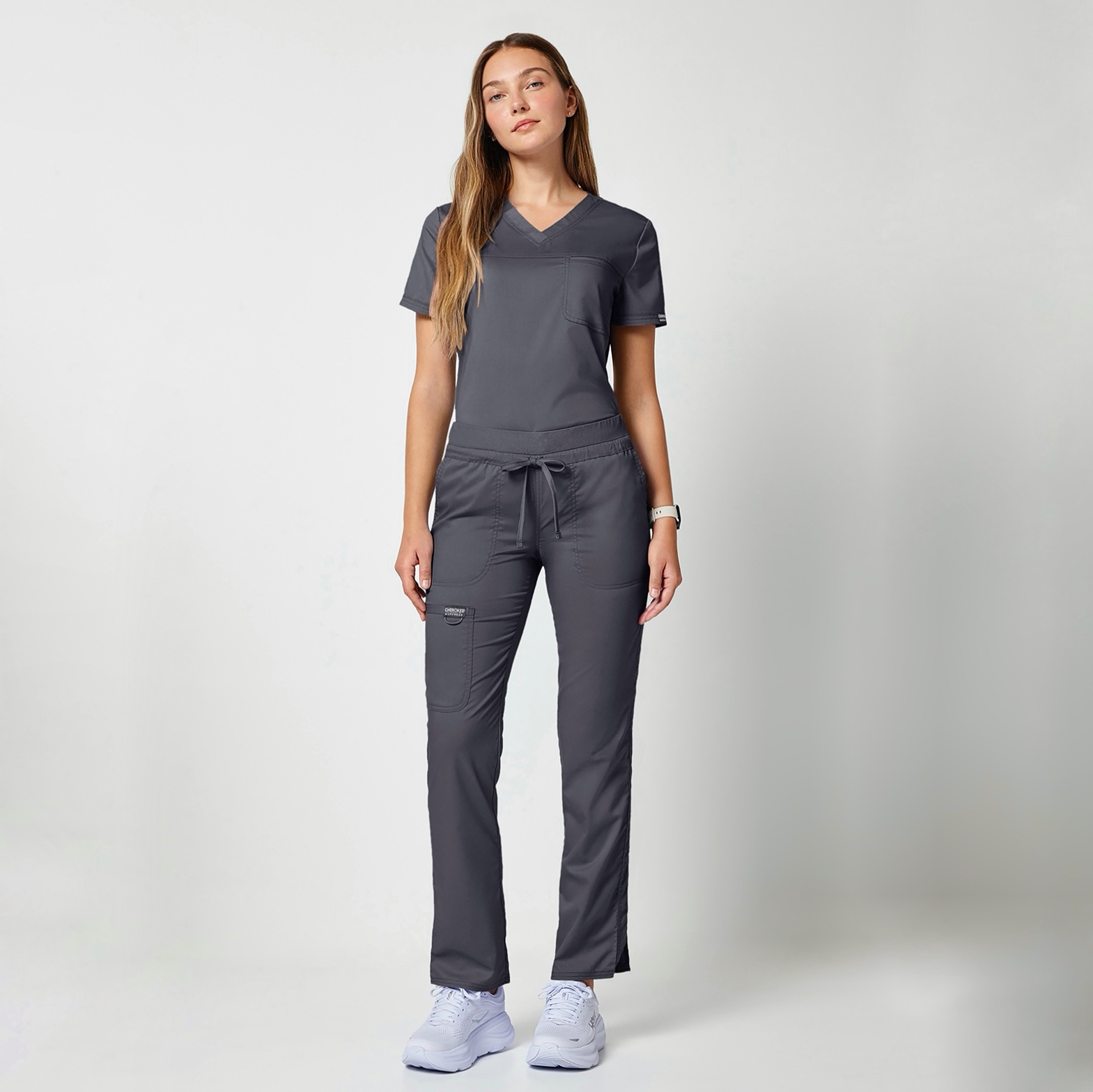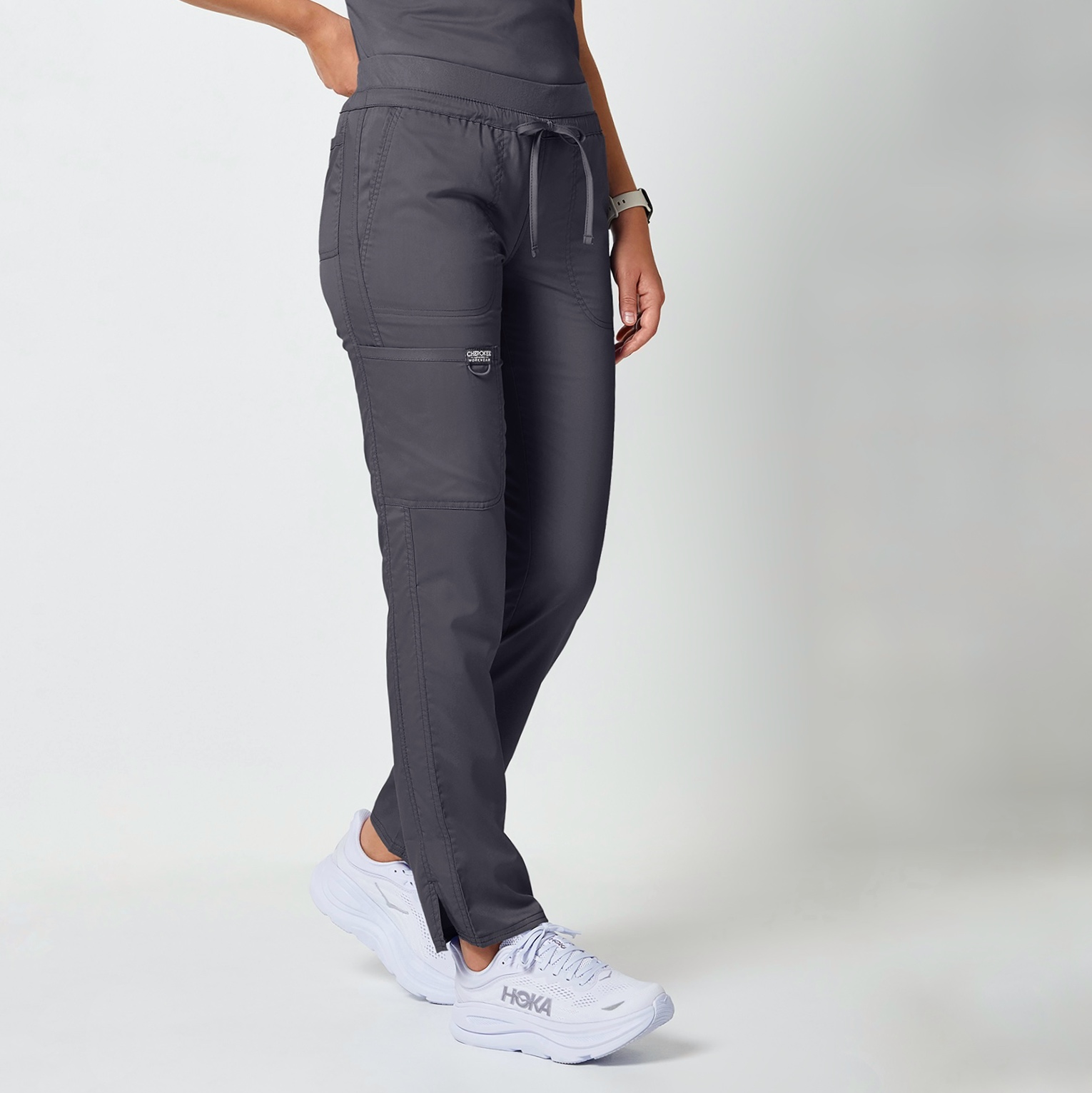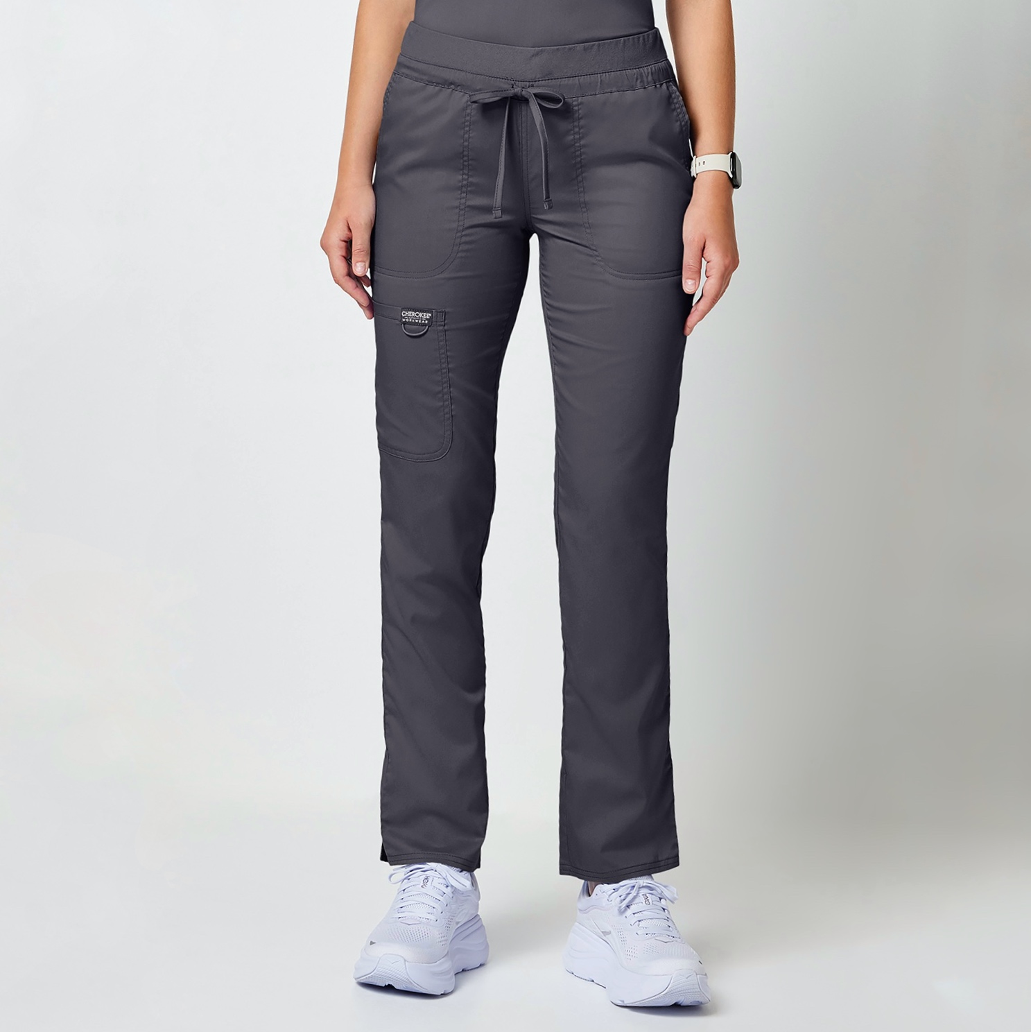 Женственные медицинские брюки со средней посадкой и зауженными штанинами подойдут на любой тип фигуры.