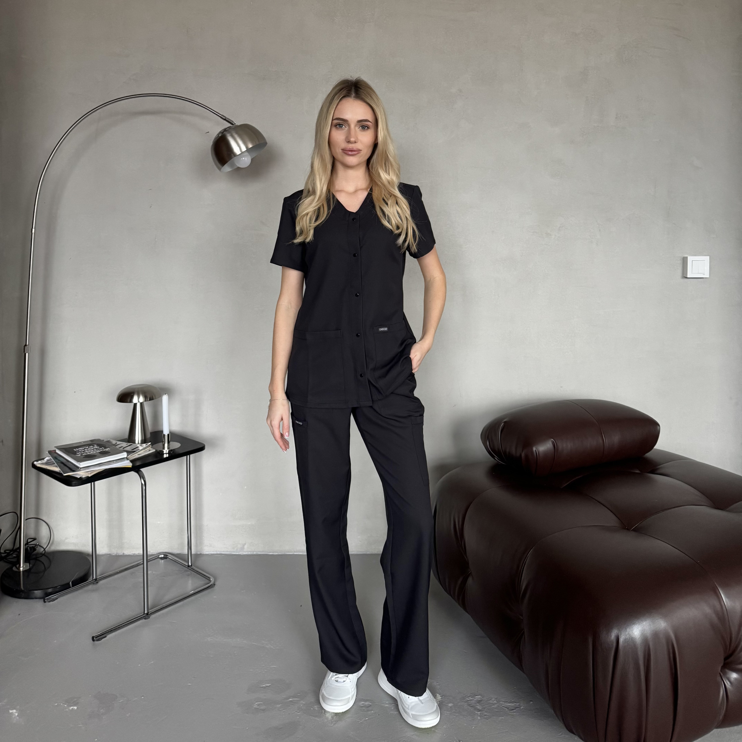 При измерении бедер лента должна проходить горизонтально в самой широкой части бедер по наиболее выступающим точкам живота спереди и ягодиц сзади. При измерении лента должна плотно (но без натяжения) прилегать к телу.Длина брюк по внутр. шву (D)
