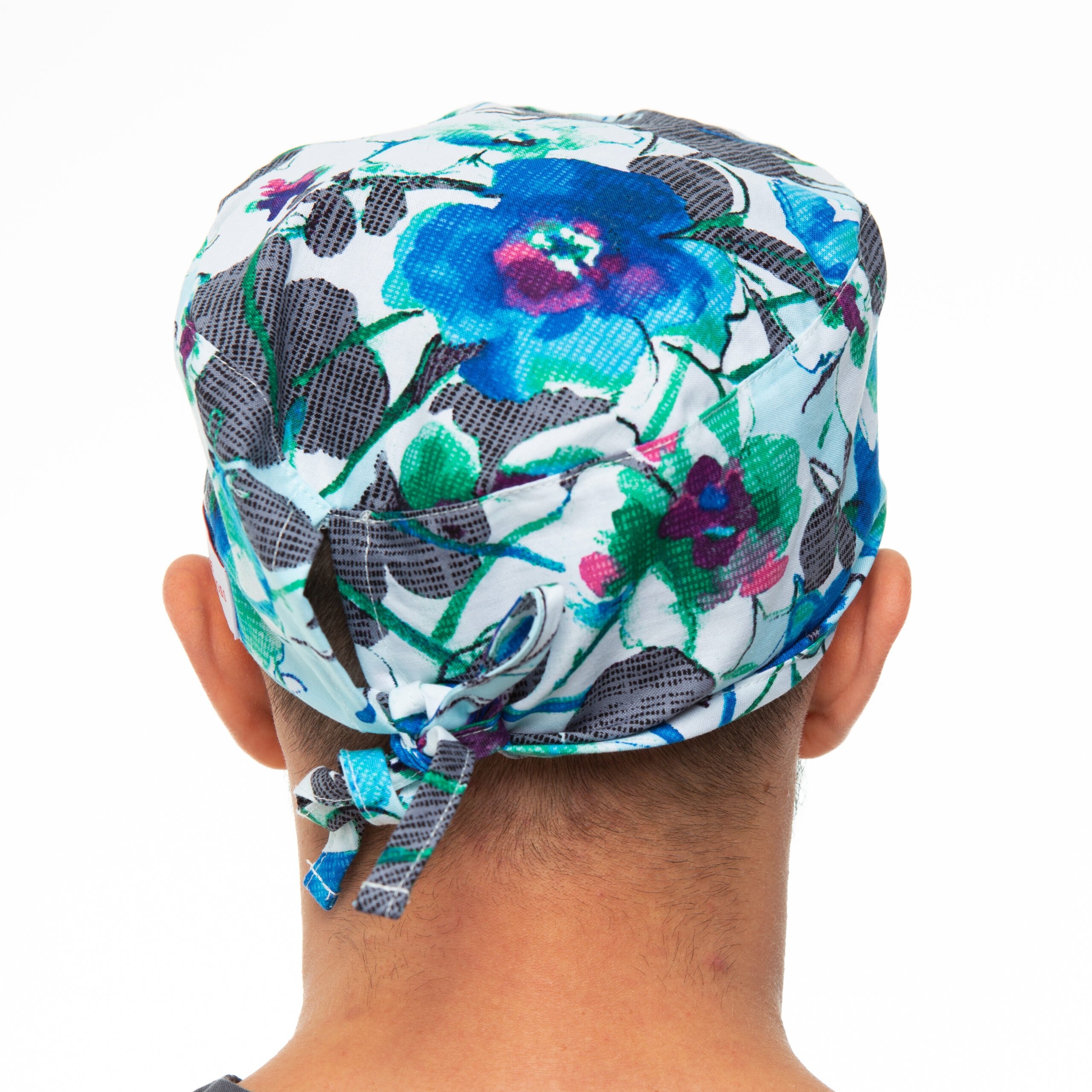 Медична шапочка з принтом, модель регулюється за об’ємом за допомогою зав’язок.