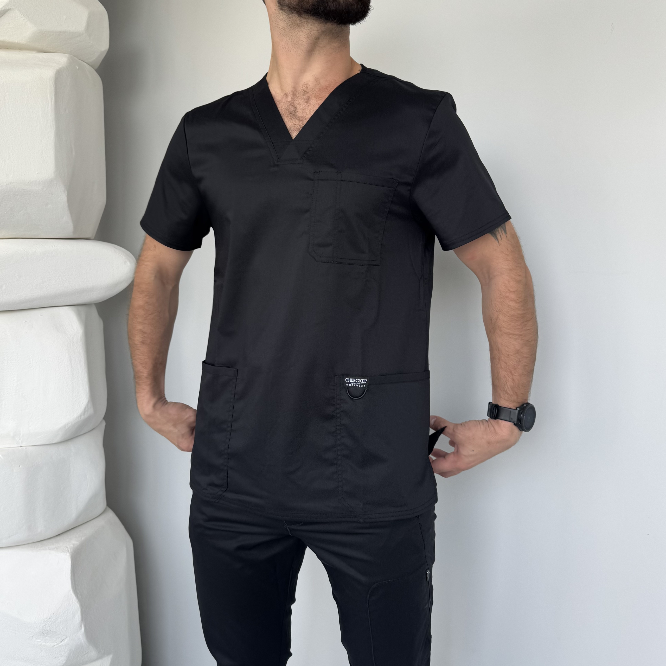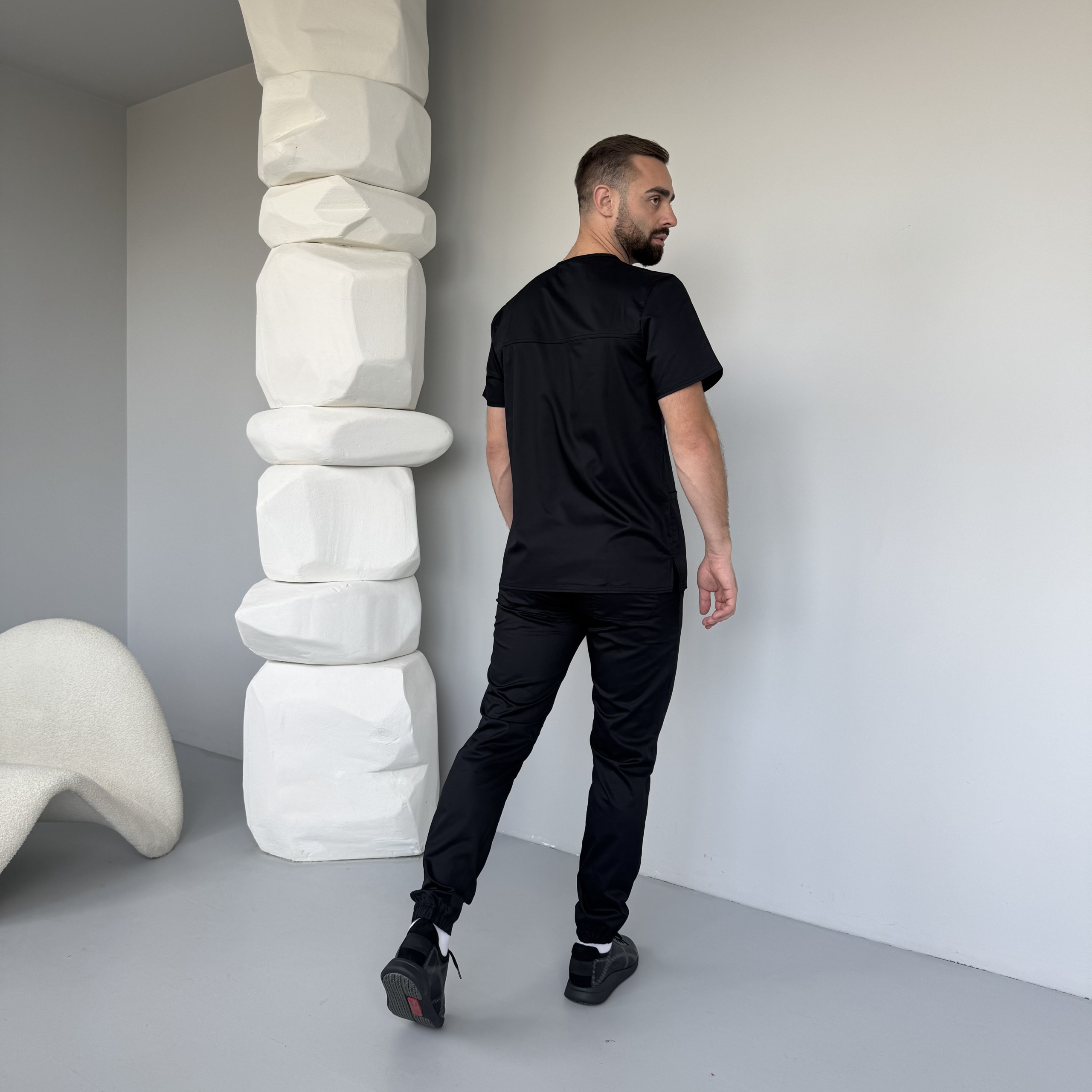 Медичний чоловічий костюм Revolution з V-подібним вирізом чорний