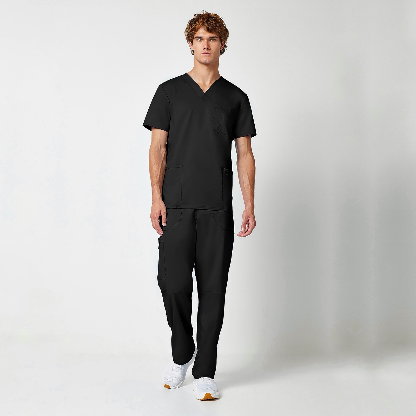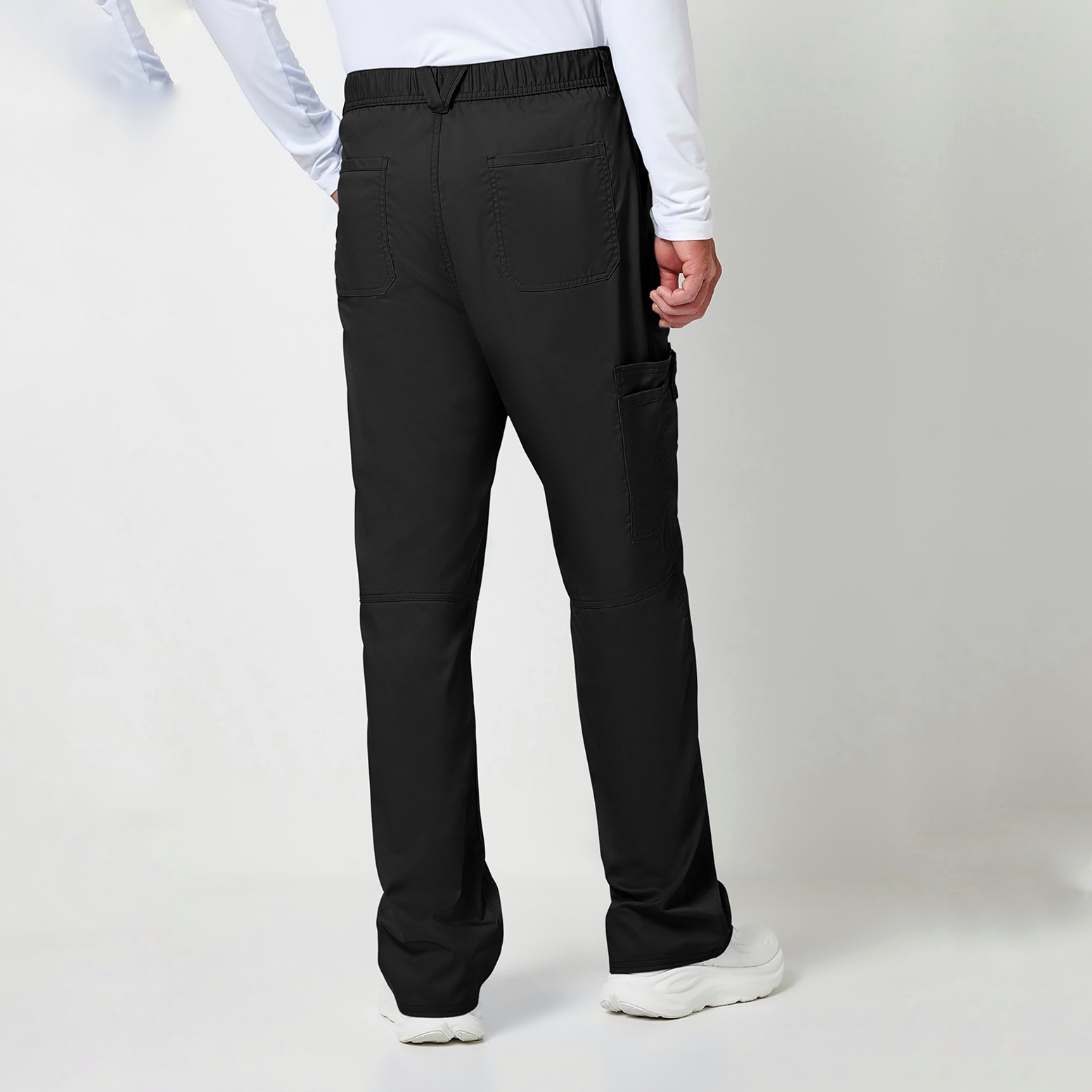 Зручні чоловічі медичні штани з колекції Workwear. Комфортний одяг для щоденного носіння – м’який, еластичний і повітропроникний твил, ідеально для цього підходить. Середня посадка, прямий крій. Пояс з шлейками для ременя і додатковою застібкою-блискавкою із ґудзиком. Спереду і ззаду по дві накладних кишені, одна бічна праворуч оснащена петлями для інструментів. Всі зрізи укріплені додатковими швами в тон основної тканини. З лівого боку вишитий логотип виробника.