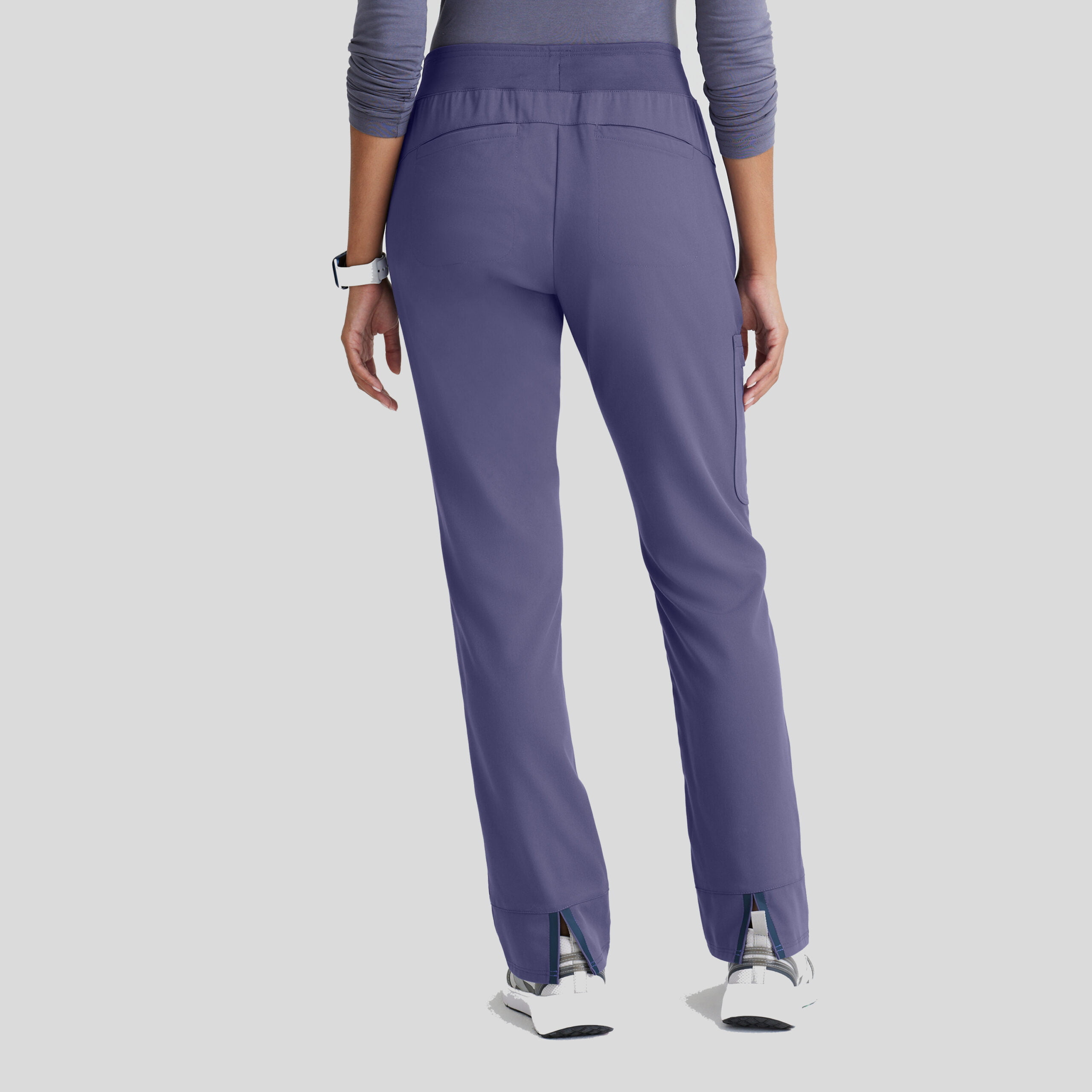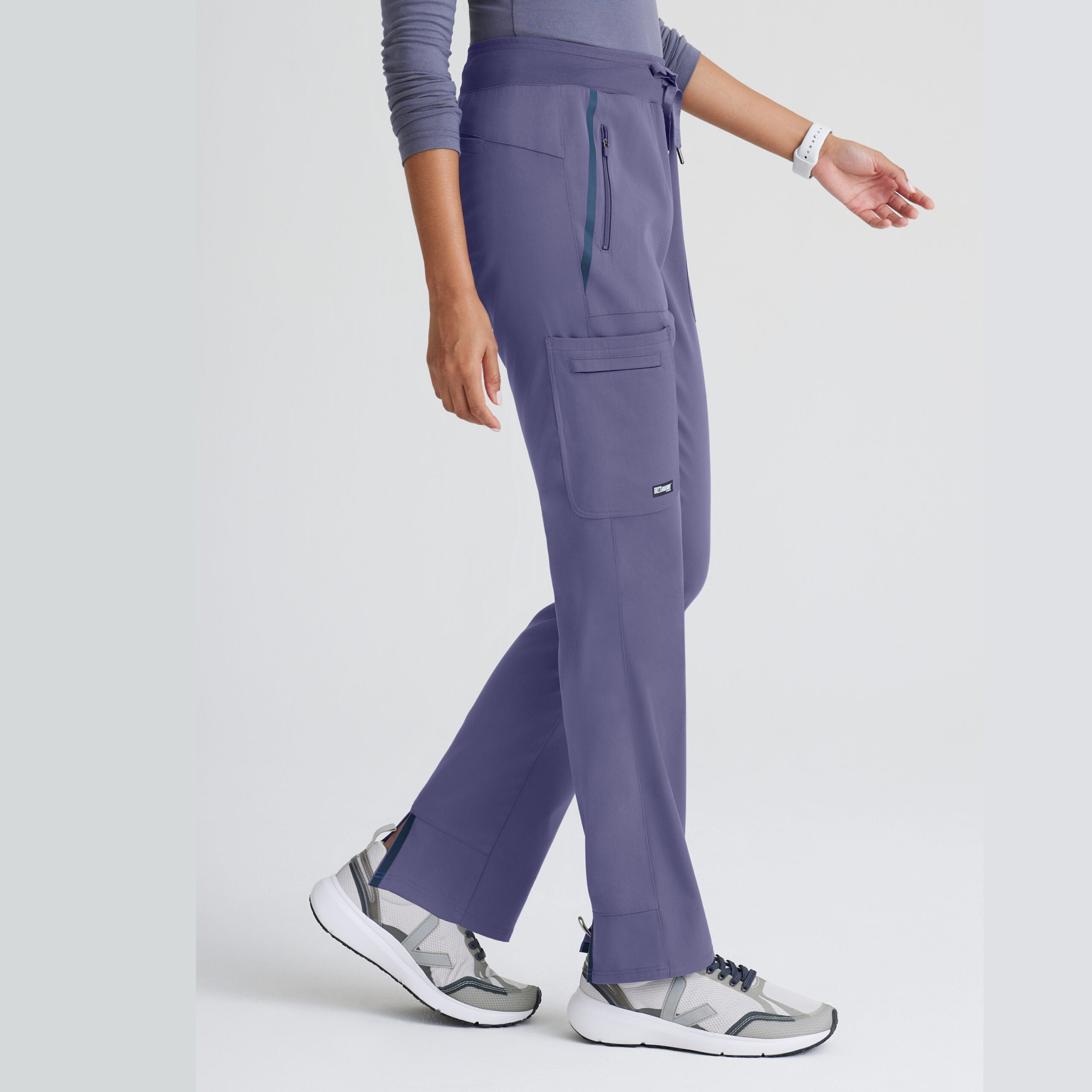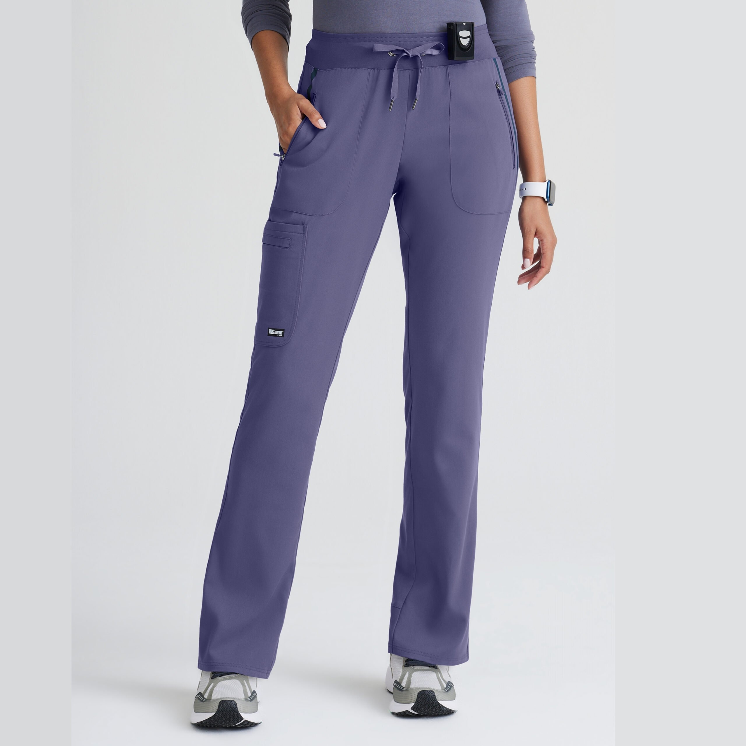 Жіночі медичні брюки з нової колекції Greys Anatomy Impact поєднують функціональність, сучасний стиль та комфорт, необхідний медичним працівникам при їх високих навантаженнях. Еластична тканина найвищої якості та м’який трикотажний пояс зі шнурком роблять ці штани дуже зручними при тривалому носінні. Задня кокетка забезпечує чудову посадку на стегнах. Вентиляційні розрізи на брючинах розташовані не з обох боків, як завжди, а ззаду, над п’ятами. Це оригінальне дизайнерське рішення, як і неяскраві акценти у вигляді косих смуг, надає образу додаткового шарму. І, нарешті, у цієї моделі цілих шість кишень!
