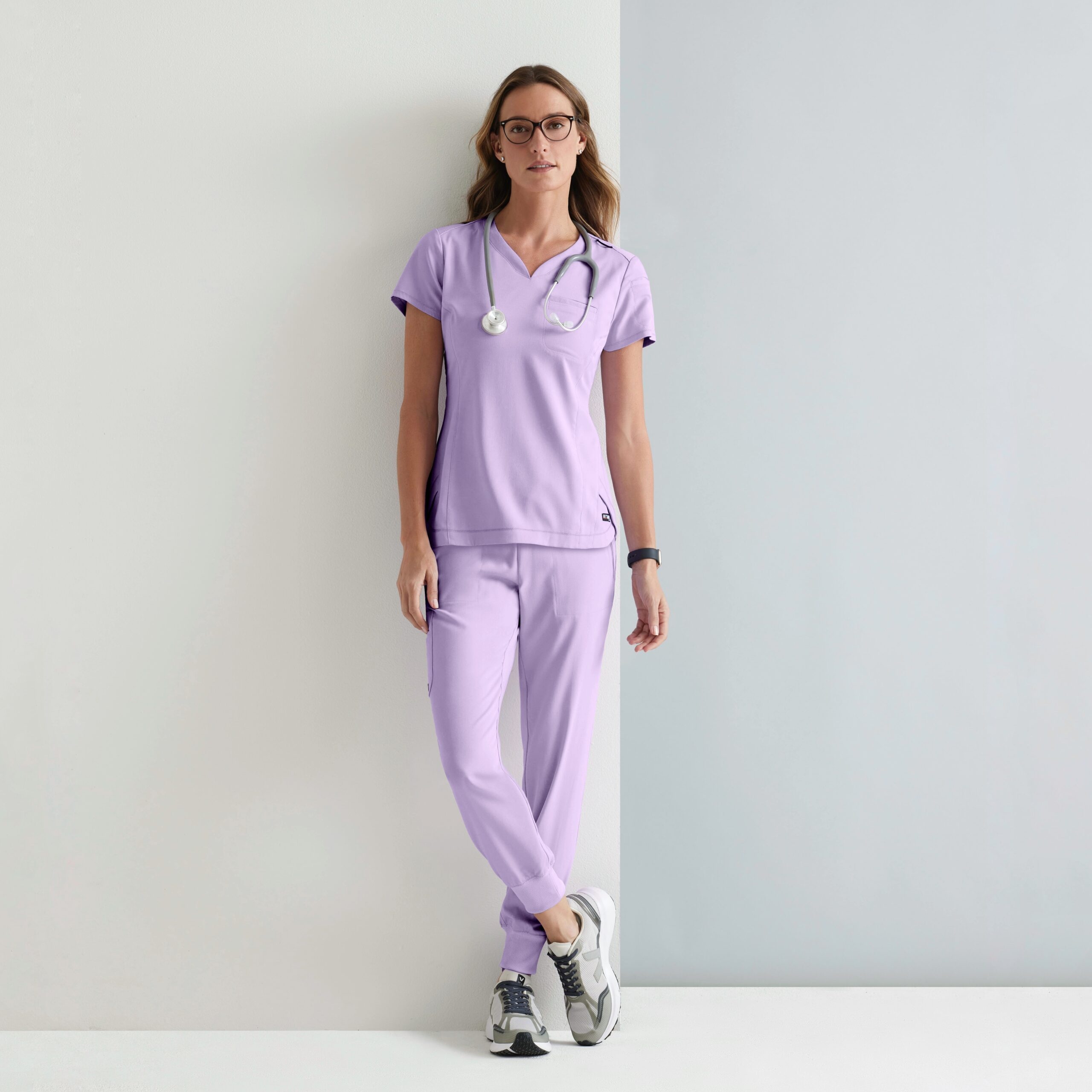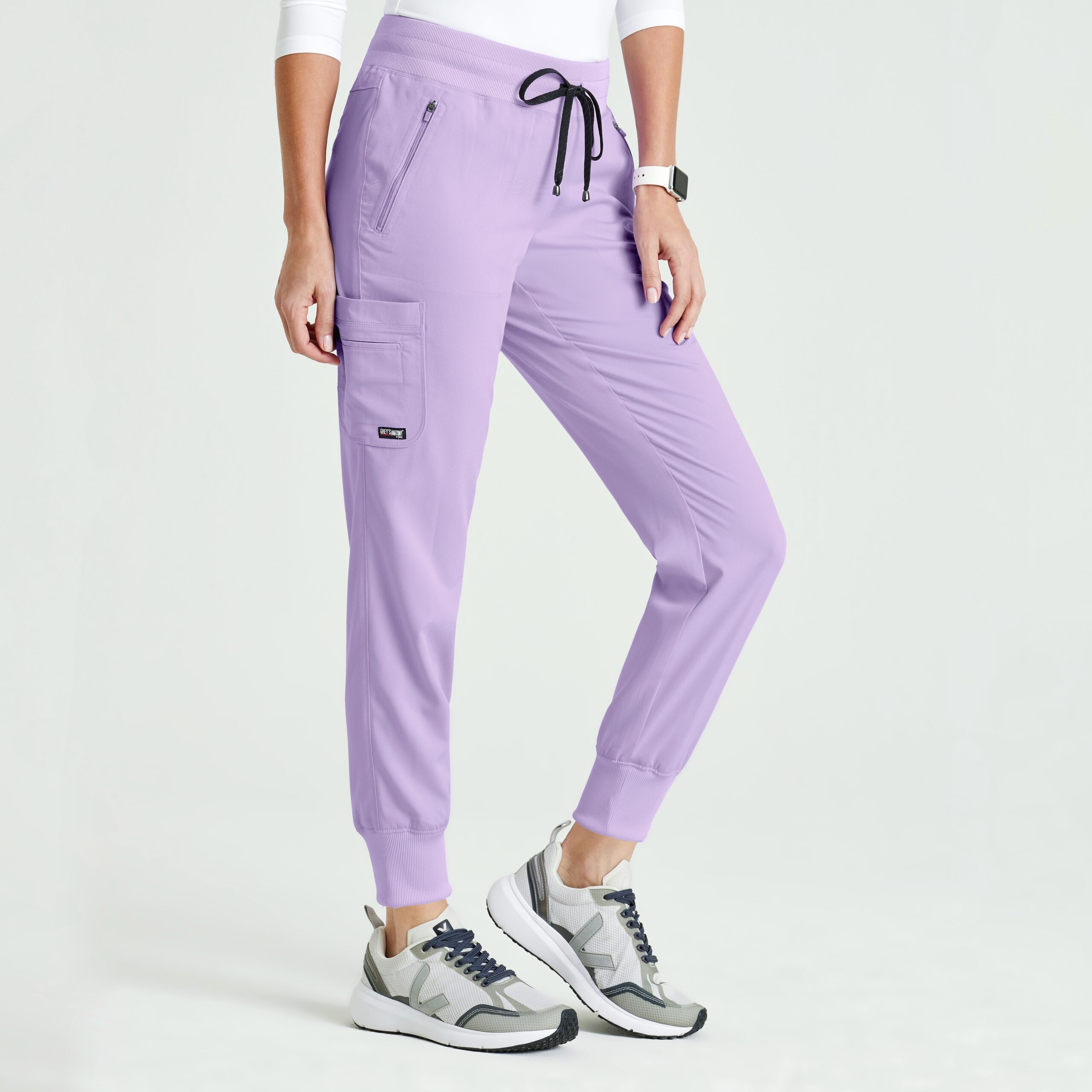 Медичні брюки-джогери кольору фіолевої фрезії з колекції Grey’s Anatomy™ Barco Spandex Stretch з п’ятьма кишенями.
