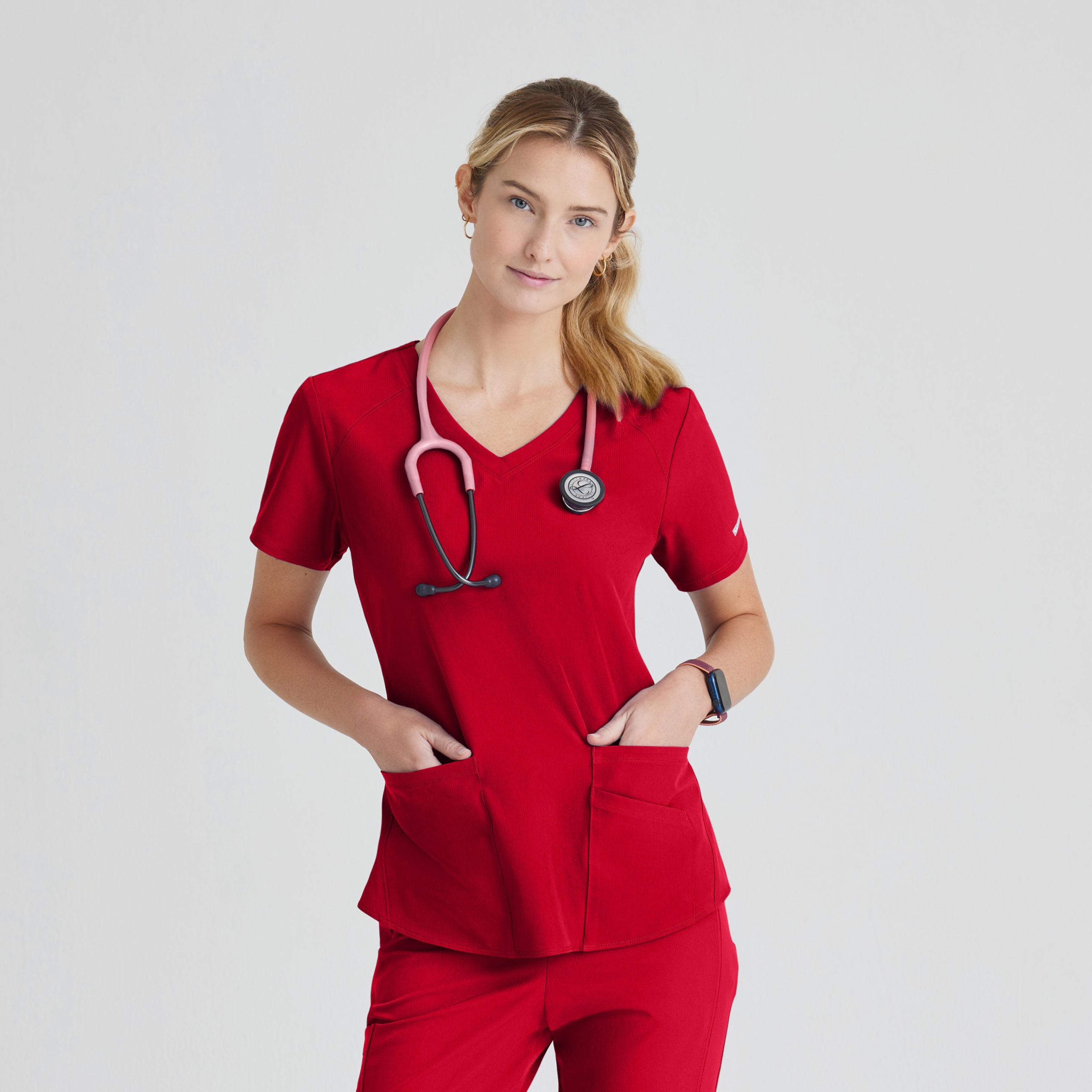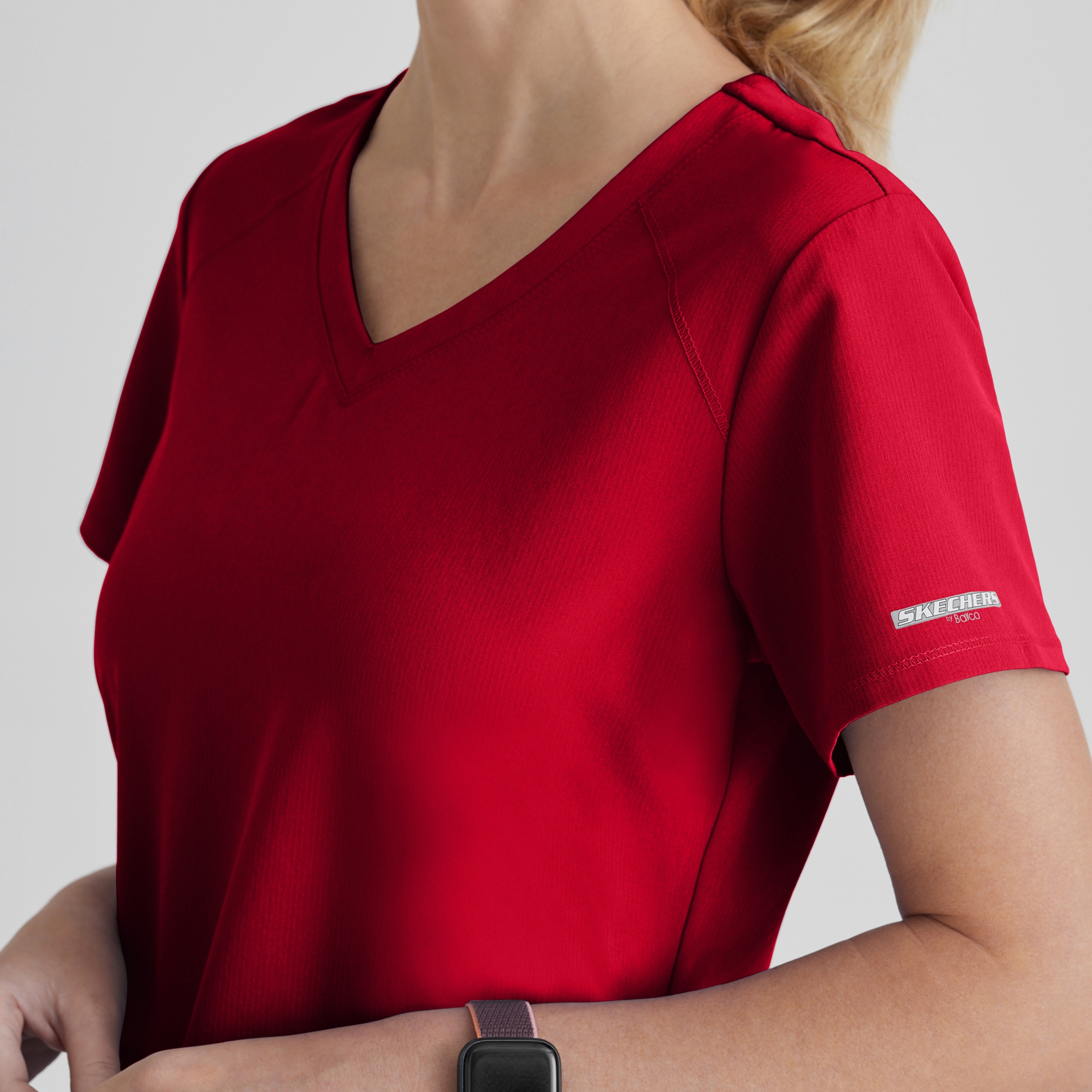 Зустрічайте свій новий улюблений медичний топ. Цей універсальний топ Skechers by Barco має розкльошений низ, який доповнює ефектний виріз. Петля на лівому плечі забезпечує зручне місце для кріплення піктограми або інших предметів, які необхідно тримати під рукою. Вологовідвідна тканина, виготовлена з перероблених пластикових пляшок, забезпечить комфорт протягом усієї зміни.