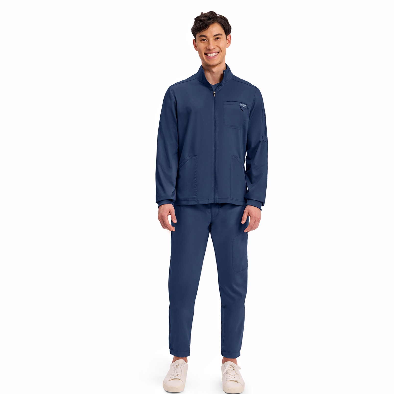 Чоловіча медична куртка на блискавці з сучасним кроєм. Легка модель з комфортними кишенями та м’якими манжетами ідеально підходить для роботи у медичній сфері. Куртка поєднує практичність і зручність, забезпечуючи свободу рухів та сучасний вигляд.