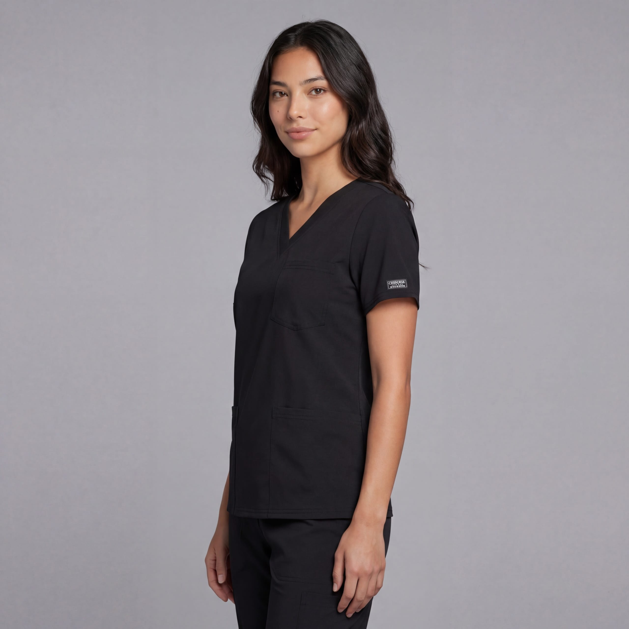 Медичний костюм Cherokee чорний із колекції CK WW Originals Ultra поєднує сучасний дизайн, функціональність і зносостійкість. Універсальний чорний колір виглядає акуратно та професійно, легко комбінується з медичним взуттям і аксесуарами та підходить для клінік будь-якого профілю.