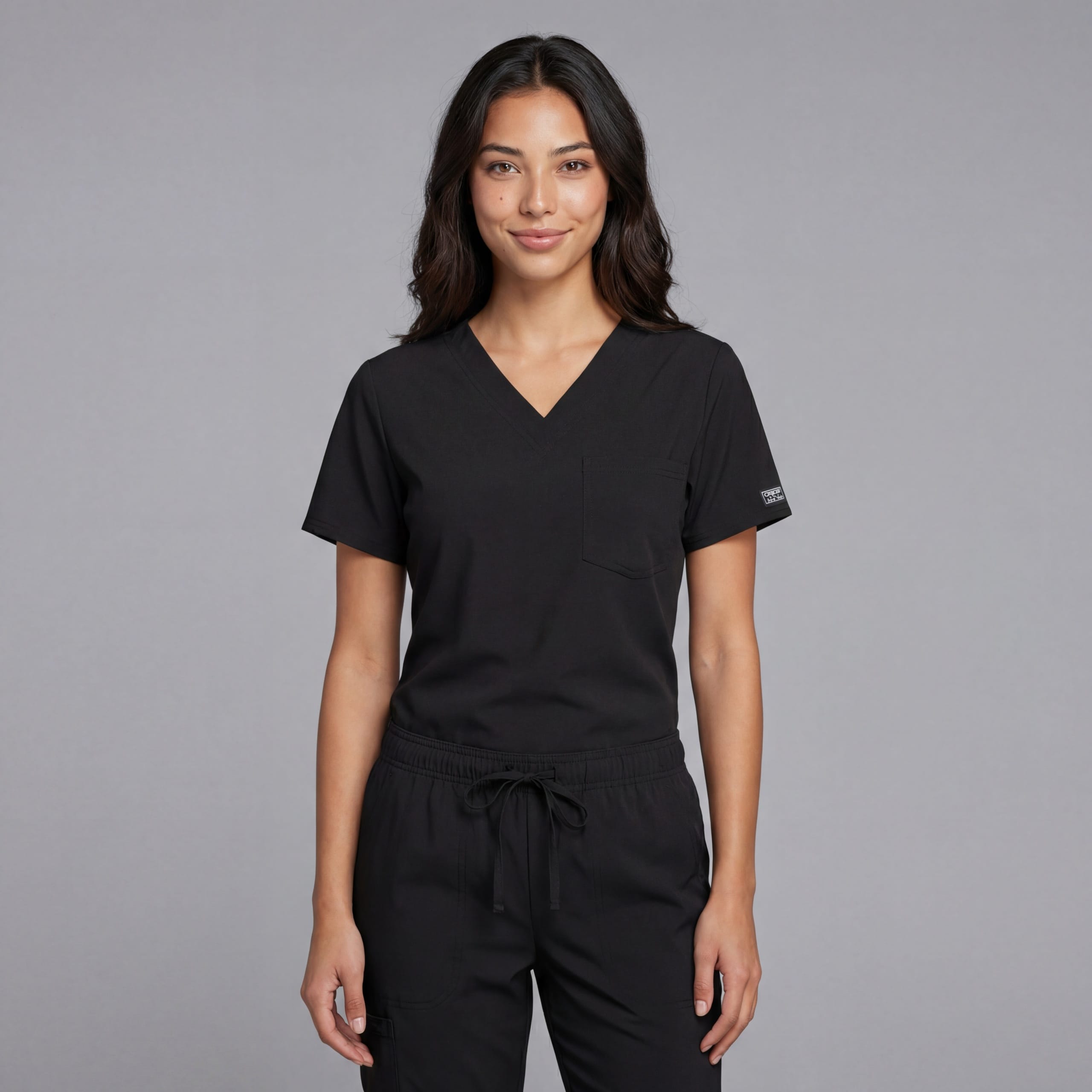 Топ має універсальний крій, що підходить як чоловікам, так і жінкам. Класичний V-подібний виріз формує акуратний професійний силует.