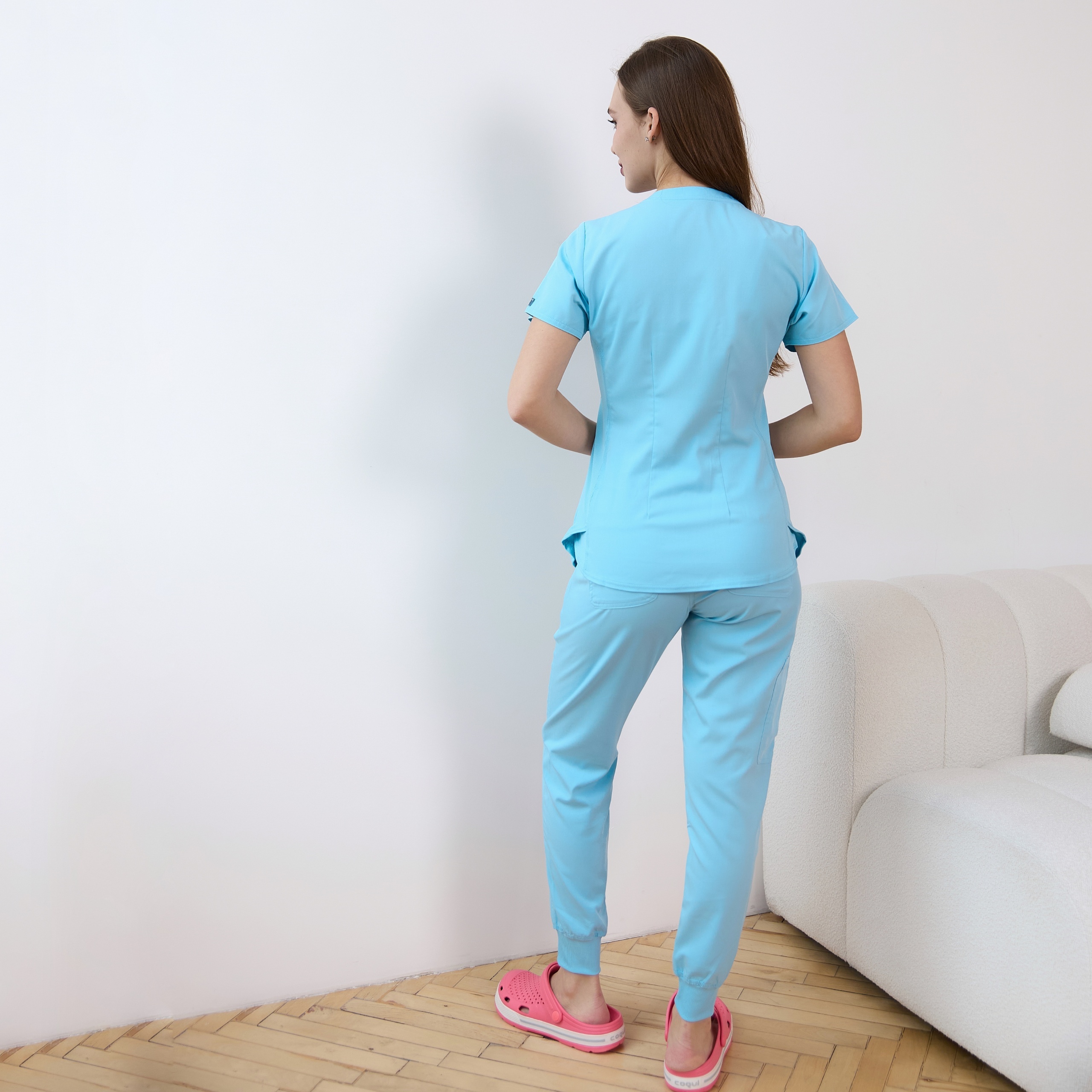 Універсальні та зручні медичні штани, натхненні спортивним стилем. Трикотажний пояс на резинці із зав’язками та манжети на щиколотках забезпечують надійну посадку, а м’яка тканина гарантує комфорт упродовж усього дня.